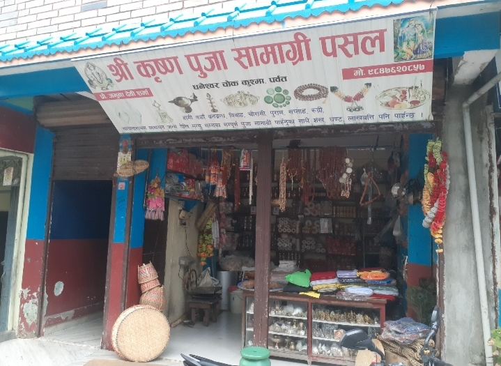 लाखौं रकम लगानी गरी संचालनमा ल्याइएका पूजा सामाग्री पसलहरुमा विक्री गर्न राखिएका ९० प्रतिशत बढी पूजा सामाग्री भारतीय उत्पादन रहेको विक्रेताहरु बताउँछन् । राम्रो प्याकिङ, आकर्षक र भरपर्दो ब्राण्डका कारण भारतीय पूजा सामाग्रीको धार्मिक अनुष्ठानमा अत्याधिक प्रयोग हुने गरेको विगत एक दशकदेखि पुजारी पेशा गर्दै आएका पंण्डीत धिरेन्द्र पौडेलको तर्क छ । पर्वतको कुश्मा नगरपालिकामा अवस्थित सदरमुकाम कुश्मा बजारमा मात्रै एक दर्जन पूजा सामाग्री पसलहरु संचालनमा छन् ।